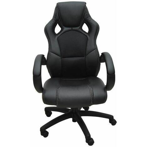 Bc-elec – Bs11010-1 Siège Baquet Fauteuil De Bureau Noir, Tissu Et Cuir