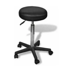 Tabouret à Roulettes Avec Dossier Hauteur Réglable Convient Pour Bureau D’affaires Noir
