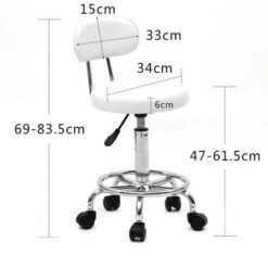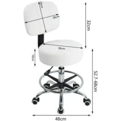 Tabouret à Roulettes Avec Dossier Hauteur Réglable Convient Pour Bureau D’affaires Blanc