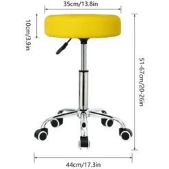 Tabouret Pivotant à Roulettes Hauteur Réglable Convient Pour Le Bureau De Travail Jaune