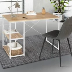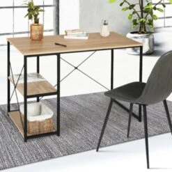 Bureau Ordinateur PC Table De Travail Meuble Salle à Manger Cuisine 120x60x74cm Marron Métal