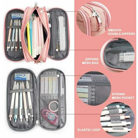 【Multifonctionnel】 Ce sac à stylo est un sac multifonctionnel avec différents compartiments, il peut être utilisé comme étui de voyage, trousse de maquillage, trousse à outils, pochette pour téléphone portable et plus pour répondre à tous vos besoins quotidiens de base.Convient au bureau, à l’école, à la maison et voyage.