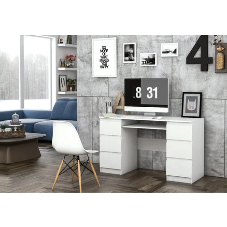 BARI Bureau Informatique D’ordinateur Travail Gaming Office 6 Tiroirs + Support Clavier Coulissant Mobilier Moderne Bureau