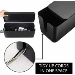 Caractéristiques : Matériau : plastique Couleur : noir et blanc. Taille : petit : 23,7 x 13,1 x 11,7 cm. Grand : 32 x 13,5 x 12,7 cm. Contenu : 1 boîte de rangement pour câble.