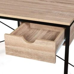 Descriptif du bureau 1 tiroir latĂ©ral DETROIT design industrielFaites place au style industriel avec le bureau 1 tiroir DETROIT bi-matière bois et mĂ©tal. Ses lignes sobres et son style Ă©purĂ© donneront Ă votre intĂ©rieur un aspect loft new-yorkais du plus bel effet !Avec son coloris bois et ses matĂ©riaux bruts, votre bureau trouvera facilement sa place chez vous car vous pourrez l’intĂ©grer Ă diffĂ©rents styles d’intĂ©rieurs en renforçant le cĂ´tĂ© loft ou en donnant un peu de chaleur Ă son design.Le bureau bois mĂ©tal industriel est dotĂ© d’un long plateau très pratique en particules de bois d’une longueur de 110 cm sur 50 cm de large. Il est idĂ©al pour travailler confortablement, disposer vos pots Ă crayons, trier vos documents sans gĂŞne et installer votre poste d’ordinateur sur l’espace de travail.Pratique, grâce Ă son tiroir, avec encoche demi-lune, vous pourrez ranger toutes vos fournitures de bureau et laisser libre votre espace de travail sur le bureau ! Le plateau de 1,5 cm d’Ă©paisseur est soutenu par une solide structure mĂ©tallique qui assure au bureau soliditĂ© et stabilitĂ© au quotidien. Le croisillon transversal en mĂ©tal apporte un renfort supplĂ©mentaire au bureau pour une stabilitĂ© optimale.Au-delĂ de son cĂ´tĂ© authentique et robuste, ses proportions compactes en font un bureau fonctionnel qui pourra s’insĂ©rer dans les petits comme les grands espaces de vie.Laissez entrer le style industriel si tendance dans votre intĂ©rieur avec notre bureau bi-matière en mĂ©tal et bois !Pratique et dĂ©co, ce meuble modernisera votre salon, chambre ou bureau et facilitera le rangement de votre espace de travail !Dimensions du bureau 1 tiroir latĂ©ral DETROIT design industrielDimensions du bureau : Longueur 110 cm x largeur 50 cm x Hauteur 75 cmDimensions du tiroir : Longueur 25,5 cm x Profondeur 28,5 cm x Hauteur 13 cmEpaisseur des panneaux de particules de bois : 1,5 cmDĂ©couvrez Ă©galement l’ensemble de nos bureaux ainsi que notre collection industrielle sur notre boutique en ligne !