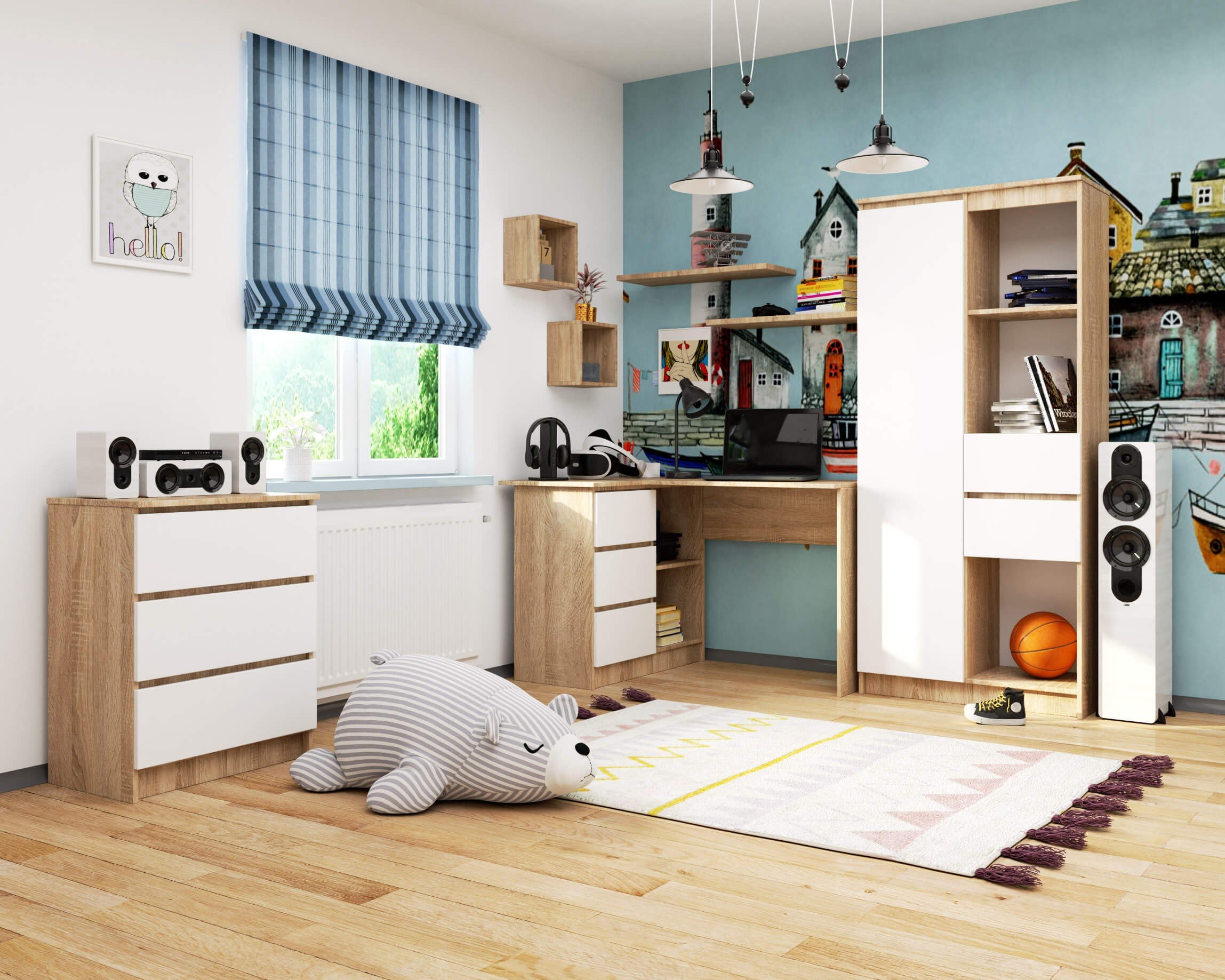 Le bureau d’angle B16 équipé d’un système sans poignée est un meuble parfait pour tous ceux qui recherchent un lieu de travail fonctionnel pour le travail et les loisirs. Comme son nom le suggère, le bureau s’intégrera parfaitement dans tous les coins d’un bureau, d’une chambre d’adolescent ou d’un studio. Le bureau dispose de 3 tiroirs qui coulissent sur des guides à rouleaux métalliques. Les tiroirs ont également un système de blocage à extension complète, ce qui les empêche de tomber. Le bureau possède les étagères qui peuvent facilement accueillir des classeurs ou d’autres accessoires. L’ étagère est amovible si nécessaire, ce qui crée l’espace supplémentaire.
