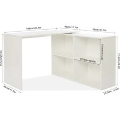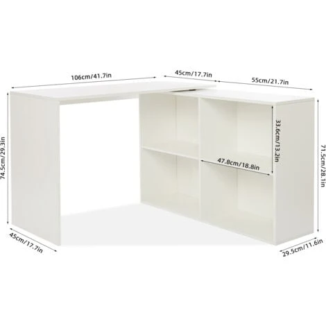 [ Plus d’Espaces de Stockage] -106 * 106 * 74,5 cm, nés pour les établis multi-ordinateurs, peuvent créer 2 grandes zones de travail. Adapté au travail, à l’écriture ou au travail manuel. 4 espaces de rangement (50L * 34H * 28P cm/chaque), offrent amplement d’espace pour vos documents. [ Angulaire Réversible ] – En forme de «L», vous pouvez changer la direction d’installation en fonction des gaucher ou droitier. Et il est également placé parallèlement au mur. Le plateau de table peut être déplacé de manière flexible pour s’adapter à différentes spaces. [ Stabilité et Durabilité ] – Des panneaux de particules de 15 mm d’épaisseur sont utilisés et des plaques supplémentaires sont ajoutées au point d’appui pour obtenir une structure plus stable. Les placages résistant aux rayures rend la table durable et facile à nettoyer. [ Facile à Monter ] – Avec un ensemble complet de pièces d’emballage et un manuel d’instructions. Aucune expérience d’installation n’est requise et ce bureau peut être assemblée facilement. Nous fournissons une équipe professionnelle pour guider l’installation. [ Polyvalent ] – Vous avez le choix entre blanc et chêne, ces deux couleurs ont fière allure dans n’importe quelle pièce. Le bureau peut être utilisé au bureau ou à la maison, et peut être un bureau, une table de jeu, une table d’étude, etc.