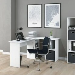 - Ce bureau mesure 136 x 73 x 112 cm (l x h x p) dans sa position en angle, et le plan de travail mesure 136 x 40 cm (l x p).