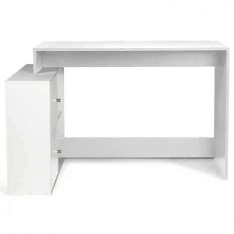 Vous avez besoin de vous installer longuement et confortablement pour faire vos papiers administratifs ou personnels, ou tout simplement pour travailler chez vous?Le bureau d’angle BOB, en forme pratique de L, vous accompagnera dans votre travail de tous les jours.Son long plateau 110 cm vous permettra d’installer votre poste d’ordinateur, vos accessoires de bureau, tout en disposant d’assez d’espace pour travailler. Fonctionnels, les espaces de rangement ouverts et fermĂ©s ont Ă©tĂ© spĂ©cialement conçus pour vous permettre de ranger vos documents personnels, bouquins, selon la discrĂ©tion que vous souhaitez leur apporter.Plus besoin de vous lever pour aller chercher un livre ou un papier. Les Ă©tagères dans la petite bibliothèque attenant au bureau sont Ă disposition pour vos classeurs et boĂ®tes de rangement. IngĂ©nieux pour sortir vos factures ou autres archives afin de les consulter en un clin d’oeil sans avoir Ă les chercher!Il ne vous reste plus qu’Ă amĂ©nager les Ă©tagères et le plateau de votre bureau avec de petits accessoires, des objets de dĂ©coration ou de petites plantes vertes pour le personnaliser Ă votre goĂ»t, et bien travailler en toute sĂ©rĂ©nitĂ©!Sa couleur blanche, chic et intemporelle, ainsi que ses formes droites sont idĂ©ales pour s’intĂ©grer parfaitement Ă n’importe quel intĂ©rieur tout en apportant un petite touche de modernitĂ© avec un design Ă©purĂ© !Libre Ă vous de l’installer dans un bureau, un salon, ou mĂŞme une chambre d’enfant. Et pourquoi pas de le transformer en coiffeuse an ajoutant au-dessus un miroir et quelques lampes LED !Enfin un bureau gain de place maxi capacitĂ© qui rĂ©pond Ă tous vos besoins !Dimensions du bureau d’angle BOB en bois blancDimensions du bureau : Longueur 110 cm x largeur 50 cm x Hauteur 77 cmDimensions de l’espace de rangement : L. 80 x l. 24 x H. 62,5 cmDimensions de la niche : L. 38 x l. 22,5 x H. 29 cmMatĂ©riaux : Panneaux de particules de bois (PB), Ă©paisseur 15 mmĂ€ monter soi-mĂŞmeCe modèle est Ă©galement disponible en imitation hĂŞtre et blanc.Retrouvez tous nos modèles de bureaux sur notre boutique en ligne