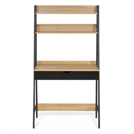 Descriptif du bureau étagère BOSTON design industriel Le design du bureau style industriel s’inspire des usines et de leurs ateliers. Les constructions massives et les matériaux bruts caractérisent le monde industriel. Zoom sur l’ADN de bureau industriel pas cher. Les lignes et le style épuré donnent à votre intérieur un aspect loft du meilleur effet. Votre bureau trouve rapidement sa place chez vous car vous pouvez l’intégrer à différents styles d’intérieur en renforçant le côté loft ou au contraire en donnant un peu de chaleur à son design.Le bureau bois métal industriel est doté d’un plateau très pratique en particules de bois d’une longueur de 84 cm sur 48 cm de largeur. Il est idéal pour travailler confortablement, disposer vos pots à crayons, trier vos documents sans gêne et installer votre poste d’ordinateur sur l’espace de travail. Vous lui trouverez facile une place dans une chambre, un salon pour en faire un bureau d’appoint pratique et fonctionnel.Fonctionnel, grâce à ses 2 étagères en bois et son grand tiroir avec encoche demi-lune, vous pouvez ranger vos livres, boîtes de rangement, disposer vos objets de décoration favoris et laisser libre votre espace de travail sur le bureau!Les plateaux de 15 mm d’épaisseur sont soutenus par une solide structure métallique qui vous assure solidité et stabilité au quotidien. La haute résistance des matériaux assure à votre bureau une excellente durée de vie.Au-delà de son côté authentique et robuste, ses proportions semblable à celui d’un secrétaire en font un bureau fonctionnel qui pourra s’insérer dans les petits comme les grands espaces de vie.Découvrez dès maintenant les finitions particulièrement soignées du bureau étagère industriel DETROIT à prix mini.Sublimez votre intérieur avec ses matériaux bruts, ses formes simples et l’alliance du bois et du métal.Laissez entrer le style industriel si tendance dans votre intérieur avec notre bureau bi-matière en métal et bois!Pratique et déco, ce meuble modernisera votre salon ou votre bureau!Dimensions du bureau étagère BOSTON design industrielDimensions totales : Longueur 84 cm x largeur 48 cm x Hauteur 154 cmHauteur entre le plan de travail et l’étagère : 44,6 cmPlateau en particules de bois : épaisseur 1,5 cmDécouvrez toute notre collection industrielle sur notre site internet !
