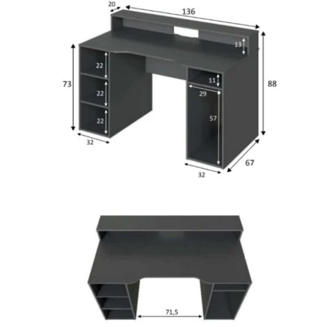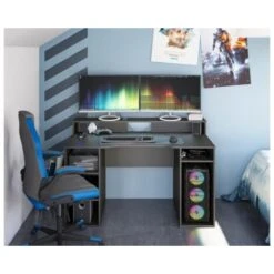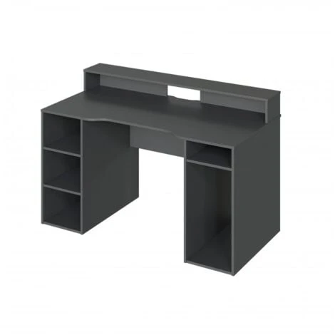 Bureau GAMER PC Gris Anthracite avec étagères
