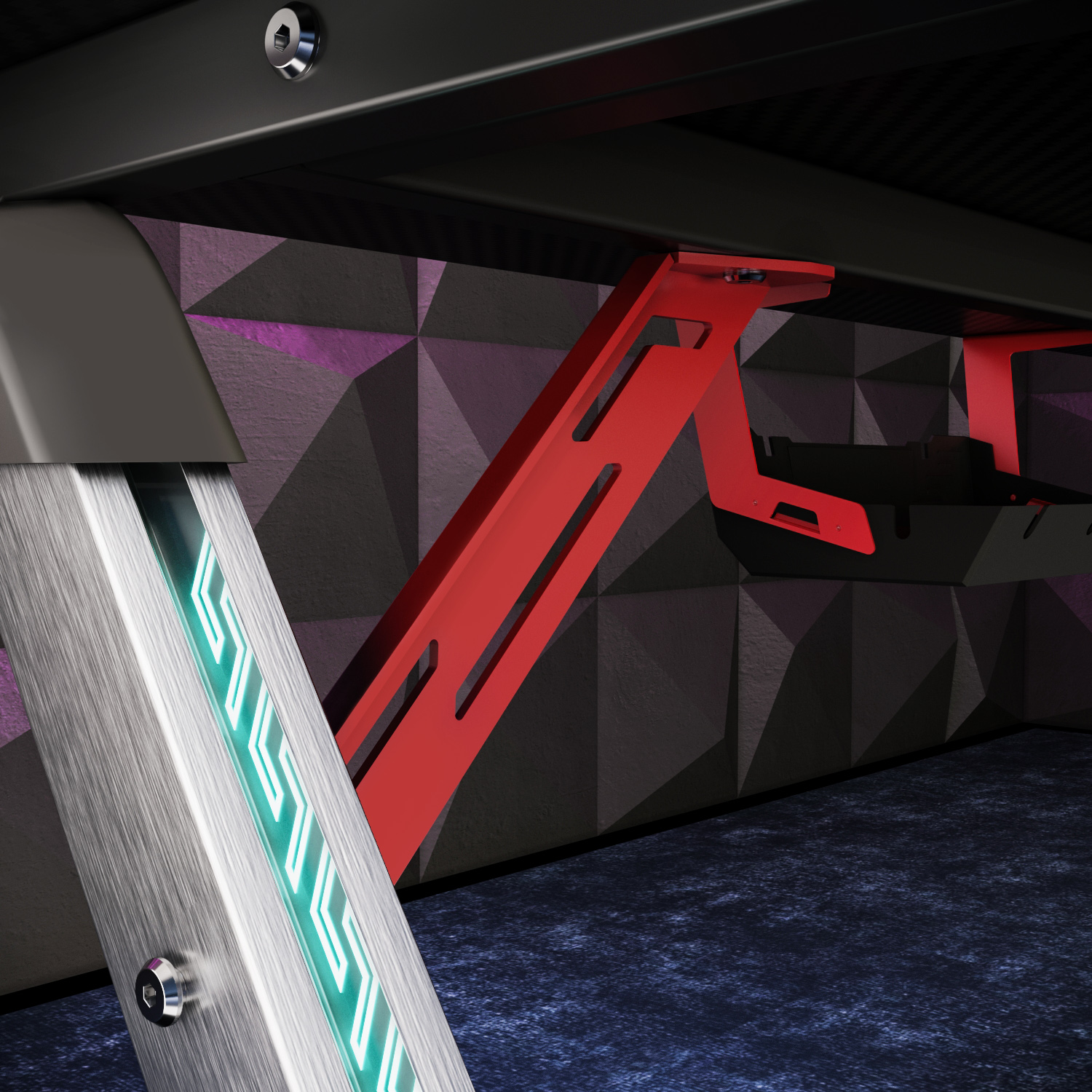 - Appuyez sur le bouton pour modifier l’effet d’Ă©clairage, sept couleurs et neuf modes de changement et des bandes lumineuses intĂ©grĂ©es en alliage d’aluminium sur les jambes.