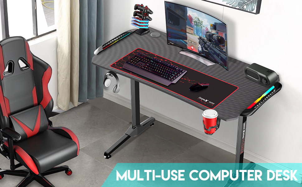 La table en fibre de carbone imperméable à l’eau et résistante à l’usure est plus pratique pour les joueurs pour diverses opérations et maximise le style de jeu. La taille du Bureau de 120 x 60 cm offre suffisamment d’espace pour les écrans, les ordinateurs portables, les claviers, les Haut – parleurs et autres appareils de jeu. Il a un look moderne, élégant et modeste.