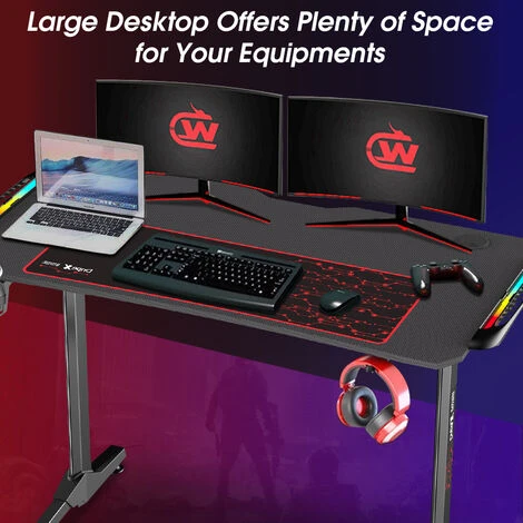 La table de jeu est équipée d’un porte – gobelet pratique, d’un porte – casque, d’un porte – Contrôleur et d’un grand tapis de souris (80 – 30 cm, offert gratuitement). Il y a aussi deux trous pour le câblage des câbles sur la table afin que vous puissiez mieux gérer les câbles et rendre la table plus propre.