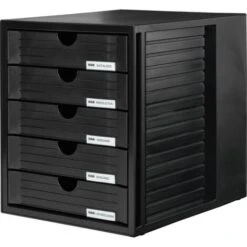 Module de classement Ă 5 tiroirs avec clips de marquage (rĂ©f. 1021) pour le papier au format A4 et supĂ©rieur. Design attrayant et innovant de haute qualitĂ©. Tiroirs Ă coulissage facile avec arrĂȘt et trou de prĂ©hension, pour une prise confortable. Sa hauteur et sa profondeur extĂ©rieures sont adaptĂ©es Ă la taille des dossiers ou Ă un espace de rangement pour dossier, donc idĂ©al pour l’armoire. Conception trĂšs rĂ©sistante Empilable, donc peu encombrant. Les pieds en caoutchouc antidĂ©rapants n’abĂźment pas la surface des meubles et assurent une bonne stabilitĂ©.