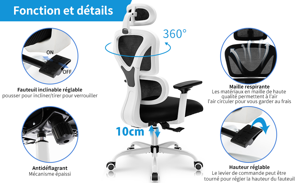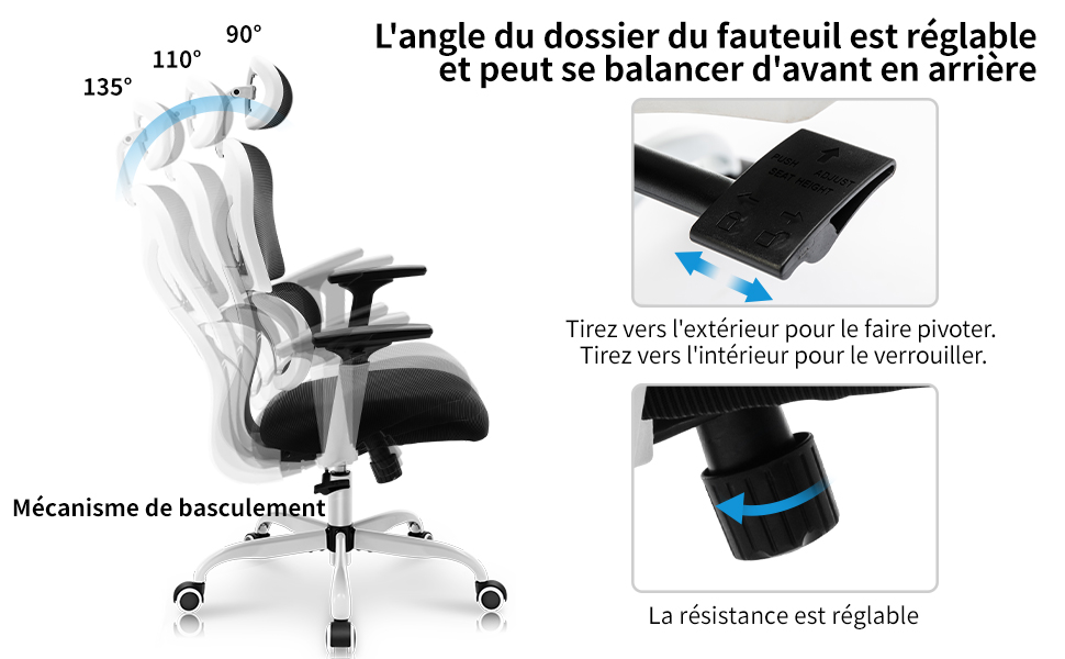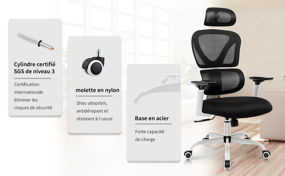 Avec des instructions et des outils clairs, le fauteuil de bureau est facile à assembler (environ 15~25 minutes)L’équipe du service après-vente professionnelle et attentionnée est prête à vous fournir un service attentionné à tout moment.