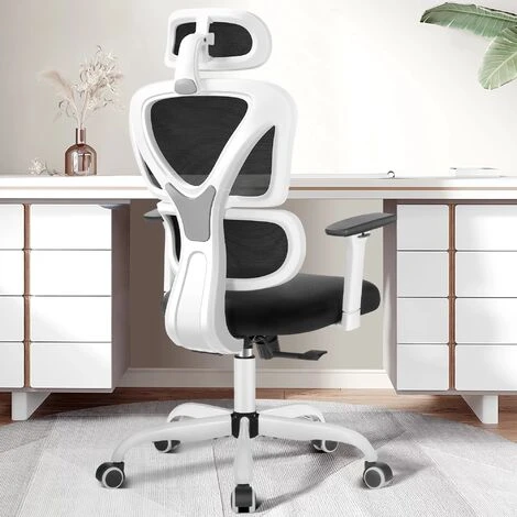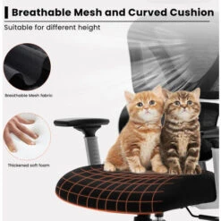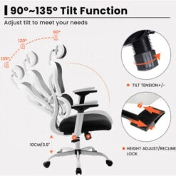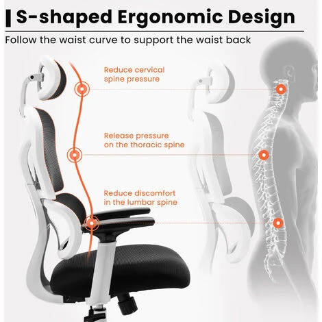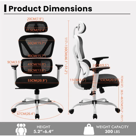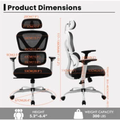 La chaise ergonomique offre 4 points de soutien (tête/dos/fesses/mains) et un soutien lombaire adéquat. La hauteur du siège, l’appui-tête et le dossier peuvent être facilement réglés pour répondre à différents besoins. Convient aux personnes d’environ 5’4″ » à 6’4″ ».