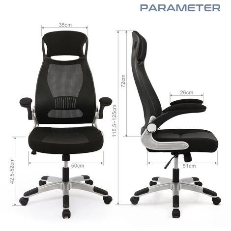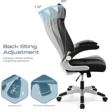 ACCOUDOIRS PLIABLES: Pliez les accoudoirs lorsque vous n’avez pas besoin d’eux afin que vous puissiez garder votre posture tapant près du bureau, le clavier peut être aussi près de votre poitrine que possible, en ignorant la hauteur du bureau ou le support du clavier.