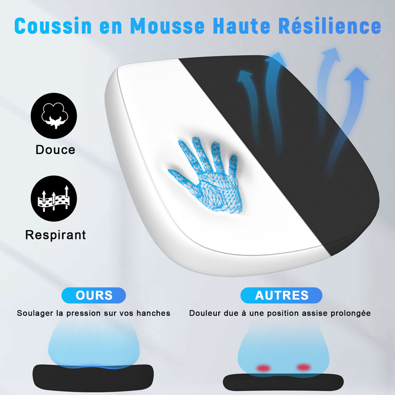【Siège moins pressant】 Le coussin de siège est rempli d’un morceau entier d’éponge haute densité, douce et solide pour assurer une pression minimale sur vos hanches et vous permettre de maintenir un état confortable. Cette chaise de bureau à domicile vous aidera à réduire la fatigue et à rester productif toute la journée.