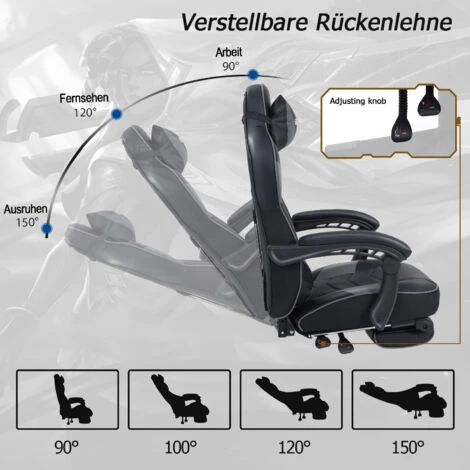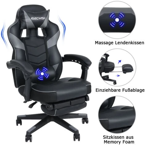 【GRANDE TAILLE】 fauteuil ergonomique de course pour ordinateur de jeux vidéo avec repose-pieds rétractable, la capacité de poids est de 150kgs, adapté aux femmes et aux hommes, minces et gros.