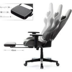Confort ergonomique: Son repose-pieds rembourré pliable et ses coussins de lombaires ajustables vous apporte la relaxation et les plaisirs à tout moment. Le mécanisme de dossier est inclinable jusqu’à 135 °. La conception augmente essentiellement l’efficacité du travail et des jeux.