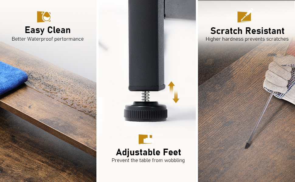 ăRobuste et durableă : ce bureau en forme de L est fabriquĂ© en acier robuste avec des matĂ©riaux rĂ©sistants Ă la rouille, il ne sera pas affectĂ© par l’humiditĂ© et ne se dĂ©formera pas comme le bois normal aprĂšs des annĂ©es d’utilisation. Et il y a un cadre de barre transversale en mĂ©tal X amĂ©liorant encore la fermetĂ©. La grande stabilitĂ© et la durabilitĂ© vous offrent un environnement sĂ»r et sain dans la chambre de votre bureau Ă domicile.