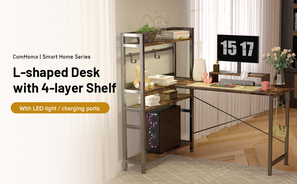 ăPorts de charge USB et prises de courantă Le bureau d’ordinateur en forme de L est construit en 2 prises de courant et 2 ports de charge USB et pour votre tĂ©lĂ©phone, bureau, haut-parleurs, casque, tablette, banque d’alimentation, Ă©quipement de jeu. La commoditĂ© du chargement de bureau vous aide Ă vous dĂ©barrasser des distractions causĂ©es par l’encombrement du bureau.