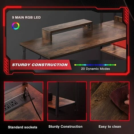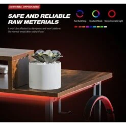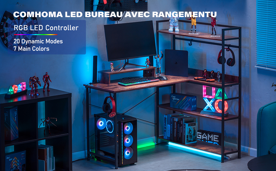 ăDĂ©cor de lumiĂšre LEDă : le bureau d’ordinateur offre une lumiĂšre LED froide, il dispose de 9 couleurs statiques et d’un contrĂŽleur de musique RVB, crĂ©e une atmosphĂšre amusante et excitante. Il peut Ă©galement ĂȘtre utilisĂ© comme bureau de jeu, bureau et bureau de lecture. Vous pourriez vous immerger complĂštement dans vos loisirs ou votre temps de travail.