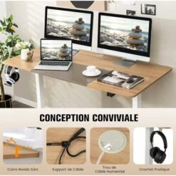 - Bureau assis-debout réglable en hauteur pour personnaliser la hauteur souhaitée de votre travail