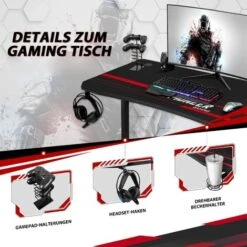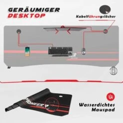 ăGrande surfaceăLa table Bureau dispose d’un bureau spacieux en deux parties de 140 x 60 cm, sur lequel vous avez non seulement plus d’espace pour jouer et travailler au bureau, mais aussi suffisamment de place pour l’ordinateur, le moniteur, le clavier, la souris, les haut-parleurs, etc. Vous bĂ©nĂ©ficiez d’un environnement de jeu confortable et agrĂ©able