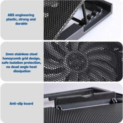 Description du produit Taille : 50,0 * 40,0 * 20,0 cm Couleur : noir, blanc, bleu Matériau : métal Contenu de l’emballage : 1 * radiateur 1.【Pad de refroidissement pour ordinateur portable à grande vitesse】 : le pad de refroidissement pour ordinateur portable dispose de 2 grands ventilateurs turbo. L’air frais peut être aspiré par le bas de ce refroidisseur pour ordinateur portable. Dissipe beaucoup de chaleur générée lorsque vous travaillez sur votre ordinateur portable La vitesse du vent peut être ajustée à vos besoins, ce qui peut prolonger efficacement la durée de vie de l’ordinateur portable 2. 【Surface métallique】: la surface du support de tablette de dissipation thermique est faite de chaleur en maille de haute qualité métal de dissipation, qui ressemble non seulement à un sens de la technologie, mais conduit également rapidement la chaleur et a une forte absorption de chaleur. Que vous soyez en déplacement professionnel ou privé, vous pouvez améliorer considérablement l’effet de refroidissement de votre ordinateur. 3. 【Ventilateur silencieux】 : le coussin de refroidissement pour ordinateur portable de jeu utilise un moteur turbo silencieux qui n’est silencieux que de 23 dB. Laissez votre ordinateur portable dissiper la chaleur par vent fort tout en réduisant le bruit fort, vous offrant une pièce calme. Deux ports USB 2.0 pour le transfert de données ou la connexion avec d’autres appareils 4.【Conception ergonomique】 : 5 angles différents peuvent être sélectionnés. Ajustez l’ordinateur portable à une hauteur appropriée et confortable. évitez les douleurs articulaires et les douleurs causées par une mauvaise posture. Soulage efficacement la fatigue de la colonne cervicale et du cou. Avec un déflecteur intégré pour empêcher l’ordinateur portable de glisser ou de tomber 5.【Largement compatible】 : prend en charge différentes tailles d’ordinateurs portables de moins de 17 pouces. Compatible avec Apple MacBook Pro Air, HP, Alienware, Dell, Lenovo, ASUS, etc. Design léger et fin qui se glisse facilement dans un sac d’ordinateur portable