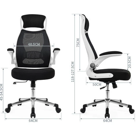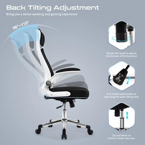 Accoudoirs Pliables: Pliez les accoudoirs lorsque vous n’avez pas besoin d’eux afin que vous puissiez garder votre posture tapant près du bureau, le clavier peut être aussi près de votre poitrine que possible, en ignorant la hauteur du bureau ou le support du clavier.