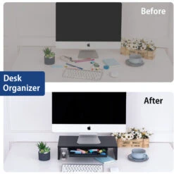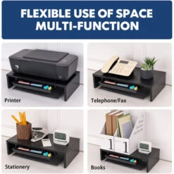 【Espace de Stockage & Multifonction】Avec un tiroir de rangement, offre un endroit parfait pour ranger vos stylos, téléphones, clips et autres fournitures de bureau. Le support de moniteur est adapté pour votre écran de PC/moniteur/ordinateur portable, garder tout à portée de main, tout en offrant un espace de travail spacieux et ordonné.