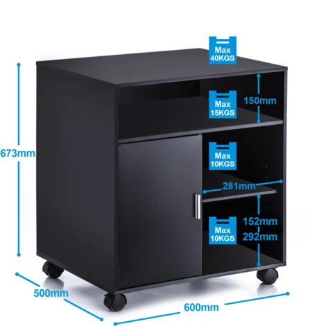 【Fonctionnel】- Dimension 60x50x66.4cm avec 3 ouverts 2 fermés rangements pouvant offrir suffisamment d’espace; la charge du haut est de 40kg où peut contenir une petite imprimante domestique