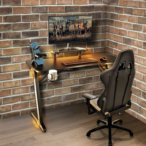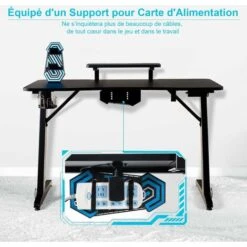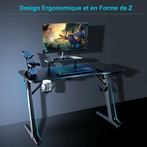 - Vous aimez jouer sur l’ordinateur ? Avec ce bureau de jeu, il est beaucoup plus facile de se battre avec ses coéquipiers dans le jeu. Le dessus de ce bureau noir et la lampe RGB pour créer une meilleure atmosphère de jeu. Il dispose de suffisamment de place pour un ordinateur, une souris, un clavier et une enceinte. Dans le même temps, la surface est en fibre de carbone, ce qui vous donne une sensation d’utilisation plus confortable. La structure en forme de Z rend l’ensemble de la structure de la table de jeu plus stable et ne tremblera pas, vous offrant une expérience de jeu plus confortable.