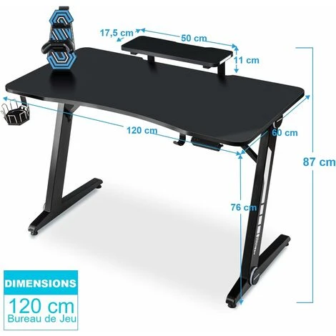 - Table de Jeu avec grande surface : La surface de Table de jeu offre amplement d’espace pour vos moniteurs de jeu, votre clavier de jeu et d’autres équipements de jeu. La surface de jeu mesure 120 cm de largeur sur 60cm de profondeur. Cette table est suffisant pour mettre deux ordinateurs, ce qui répondre à vos besoins de jeu quotidiens.
