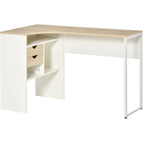 – Bureau informatique bicolore aspect chêne clair et blanc idéal pour ajouter une touche de style nordique à la pièce où vous l’installerez