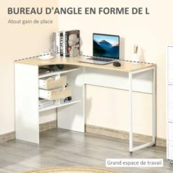 – Bureau d’angle qui optimisera l’espace de votre pièce : chambre, studio, bureau, etc.