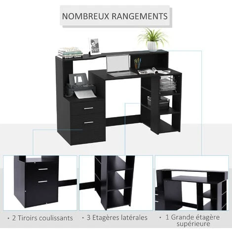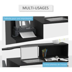 – Multi-rangements : tablette imprimante, 3 Ă©tagères latĂ©rales, 1 Ă©tagère supĂ©rieure centrale et double tiroir coulissant gauche pour ranger et organiser vos dossiers