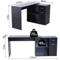 – Bureau modulable (Ă©tagère pivotante Ă 360°) Ă installer dans la position que vous prĂ©fĂ©rez : droite, en angle, etc…