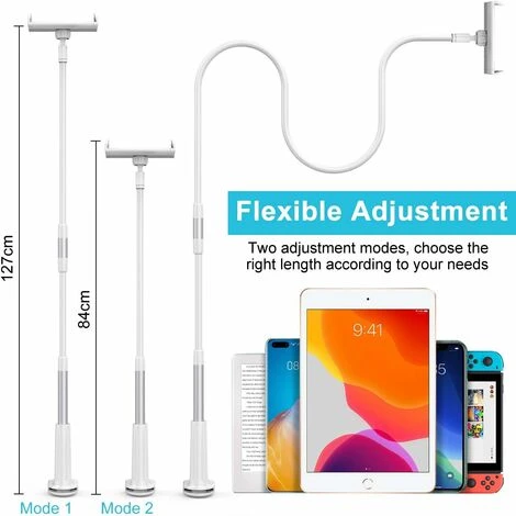 Le support pour téléphone dispose de deux modes de longueur, la longueur maximale est de 127 cm, vous pouvez ajuster le luminaire rotatif à 360 degrés et le bras long flexible selon différents scénarios pour obtenir la meilleure expérience.