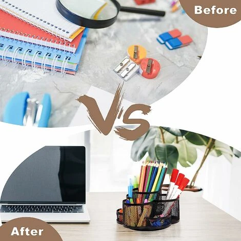 【ÉCONOMIE D’ESPACE DE TAILLE PARFAITE】 Un organisateur de bureau a 7 tasses de tailles différentes, assez pour que vous puissiez organiser les nécessités quotidiennes sur le bureau. L’organisateur de stylos pour bureau est un accessoire esthétique parfait et un rangement pratique pour le bureau, la maison, l’école, l’espace de travail, etc. TAILLE PARFAITE : 7 x 7 x 4,5 pouces. -Métal de qualité avec un revêtement antirouille durable. Bords plus lisses et plus élégants, sans décoloration, plus durables et plus sûrs. L’organisateur de crayons pour bureau est conçu avec un fond antidérapant pour protéger votre bureau des rayures. propre et bien rangé. Le design magnifique rend l’apparence esthétique et moderne. Un beau cadeau pour les enfants, les familles, les amis ou les collègues.^