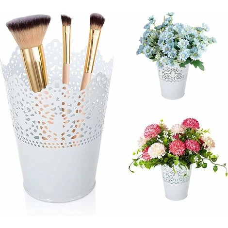 Pot de pinceau de maquillage, porte-pinceau cosmétique blanc porte-pinceau, pot de fleur en plastique multifonctionnel pinceau cosmétique, crayon à sourcils, eye-liner, rouge à lèvres, crayon