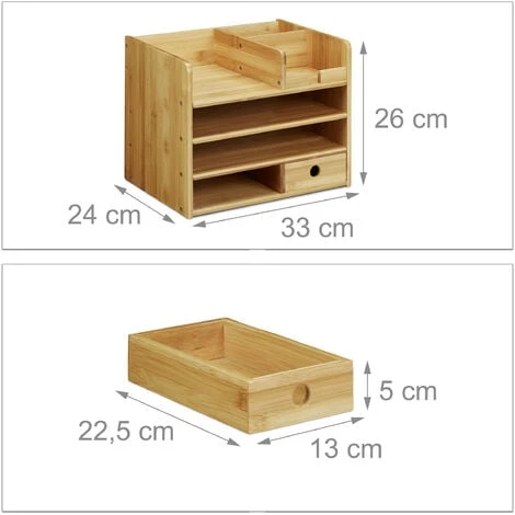 Le système d’organisation pour le bureau offre beaucoup d’espace de rangement pour stocker les ustensiles d’écriture, les lettres et les documents au format A4. Avec deux grands compartiments qui servent de range-documents, un tiroir et plusieurs petites subdivisions, vous êtes bien équipé pour garder votre bureau ordonné afin de travailler dans les meilleures conditions. Non seulement comme organiseur de bureau, mais aussi dans chambre des enfants pour les devoirs, la boîte à tiroirs est un outil utile pour ranger les stylos, les trombones et autres ustensiles.
