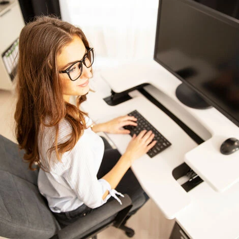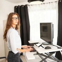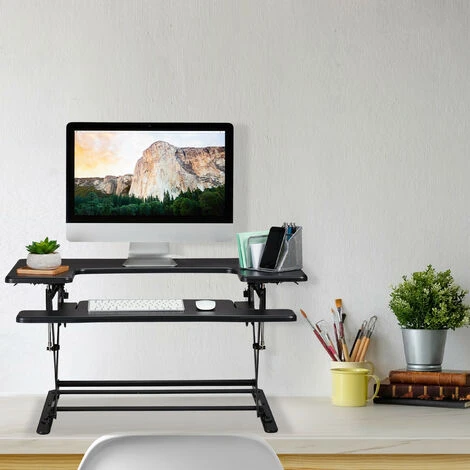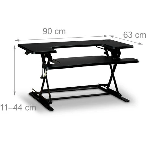 Optez pour ce Poste de travail Assis/debout Ă hauteur rĂ©glable pour votre bureau ou Ă la maison. Cette station de travail vous permet de passer de la position assise Ă la position debout en un tour de main. Cela permet d’éviter des douleurs au dos ou aux Ă©paules lorsque l’on reste en position assise de manière prolongĂ©e. La hauteur du bureau est ajustable entre 11 et 44 cm. Le bureau offre de la place pour deux Ă©crans ainsi qu’un emplacement spacieux pour votre clavier.  Â