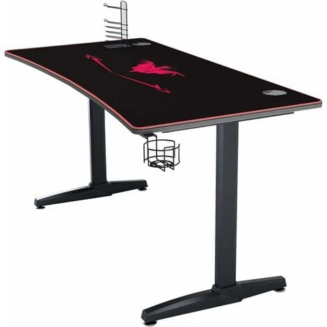 Bureau Gaming avec Rangement pour Les Gamers E-Sports – Ce bureau gamer est livré avec un support de poignée de jeu, un grand tapis de souris integre couvrant tout le bureau, un crochet pour casque et un porte-gobelet. Avec ses pieds robustes en forme de T et ses coussinets en nylon anti-rayures, le bureau de gaming est plus durable et plus stable.