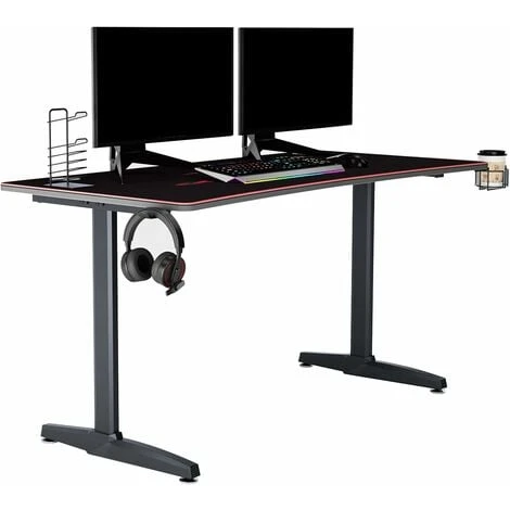 Bureau Durable & Stable – Construit en panneaux de fibres à haute densité avec surface en PVC et cadre en acier revêtu offrant une grande durabilité. Conception en forme de T et quatre pieds de nivellement pour que bureau pour gaming reste horizontal.