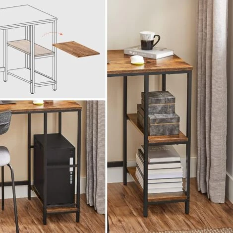 - Étagères réversibles : Les étagères peuvent être installées à droite ou à gauche. En plus, vous pouvez retirer la planche du milieu pour y placer votre unité centrale, ou la laisser pour ranger des livres, des dossiers ou d’autres affaires