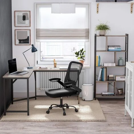 Dans un coinConçu en forme de L, ce bureau s’intègre parfaitement dans un coin pour gagner de l’espace. | Grande table2 ou 3 écrans ? Pas de problème ! Le grand dessus de table est prêt à faciliter le multitâche et à stimuler votre productivité. | Style industrielLes pieds noirs mats et le dessus grège insuffleront chaleur, caractère et peut-être inspiration à votre bureau. |