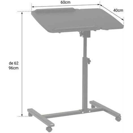– Table Ă roulettes : L 60 Ă— l 40 Ă— H 62 Ă 96cm